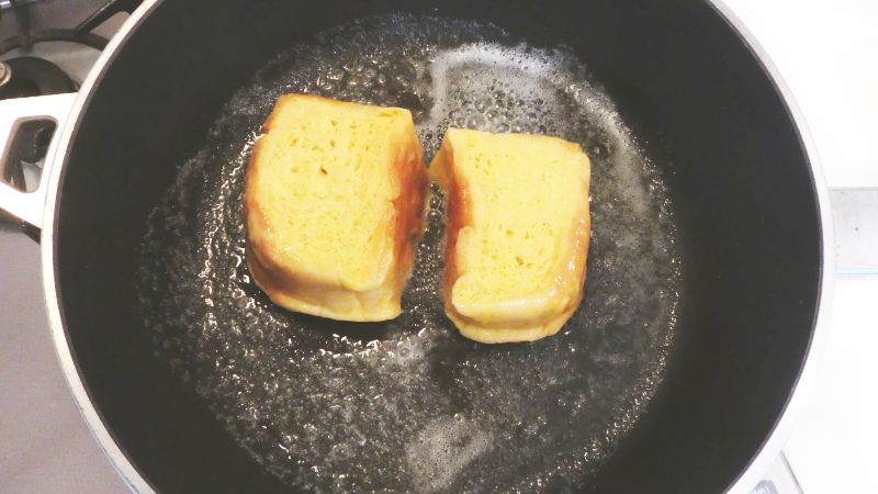 このフレンチトーストは、卵・牛乳・砂糖・生クリームを混ぜたシンプルなアパレイユ(液体状の生地)に、
