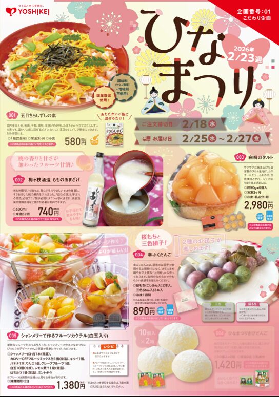 ヨシケイでは、ミールキット以外にもひな祭り向けの商品が販売されています。